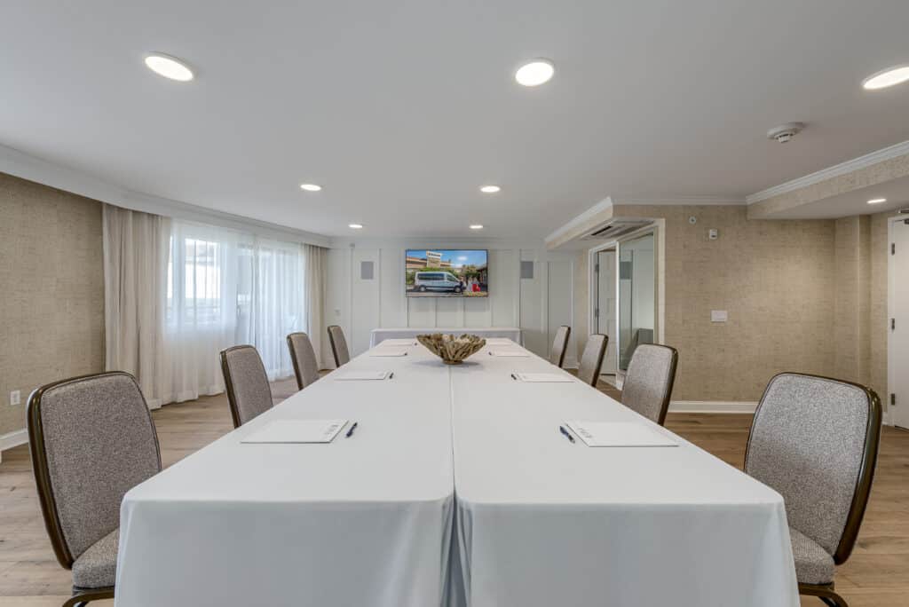 A mirror image of the Stone Harbor Suite, full AV capabilities and a quiet atmosphere make this ideal for small groups.